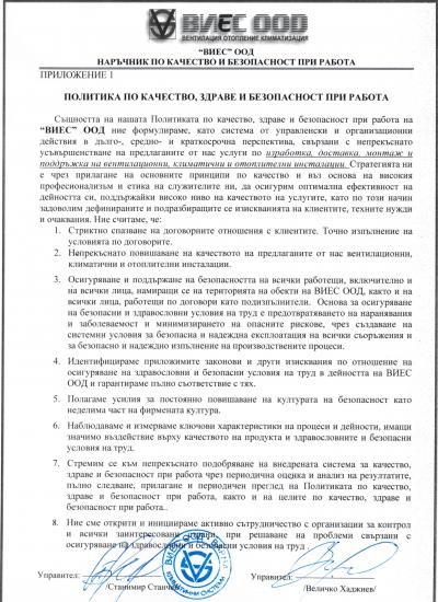 Сертификати - Вентилация, климатизация, отопление - ВИЕС ООД Варна